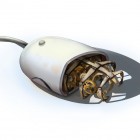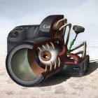 Si possono scorgere gli organi interni di un iPhone, ingranaggi e colonna vertebrale di un Magic Mouse, ancora l’occhio col nervo ottico di una reflex Canon, tendini e spine da un controller per Playstatione ed Xbox.